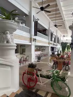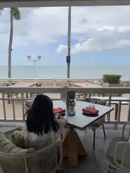 Photos 1️⃣-4️⃣: A seaside restaurant at the hotel. Despite the name Dusit Thani Hua Hin, the hotel is actually located in Cha-Am, known as "Qi Yan" in Chinese. It’s about a 20-30 minute drive from Hua Hin city, offering a quieter atmosphere. The hotel provides a 💰500🐷 voucher for check-in, which can be used at this restaurant for two people, covering food and drinks. The total cost is approximately 💰1,000-2,000🐷.