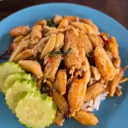 Today, Min will take you to a hidden gem with great prices and delicious food. The flavors are intense and the ingredients are fresh, like you caught the crabs yourself in the ocean. Although the menu is small, the dishes are packed with flavor. For example, the awesome crab basil rice and the mackerel steamed in banana leaves are incredibly delicious. The fried rice, clear soup, and tom yum (spicy salad) are the main dishes. The food is delicious and the service is excellent. Although it's an old house, the restaurant is clean and tidy. My boyfriend and I were there for a week and we requested a meal without meat, and he was so lovely.