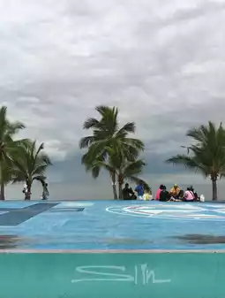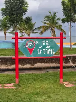 For those visiting Hua Hin who don't want to spend time at a cafe or the crowded beachfront, we recommend "19 Rai Public Park." This peaceful park is perfect for relaxing, enjoying the sea view, and immersing yourself in nature. It's a great place for the whole family to unwind. There's ample parking available. The area is divided into two zones: a sports area and a public park. Inside, there's a playground, a badminton court, a futsal court, a basketball court, an exercise equipment area, and a multi-purpose area. It's also a beach where you can walk to play in the water.