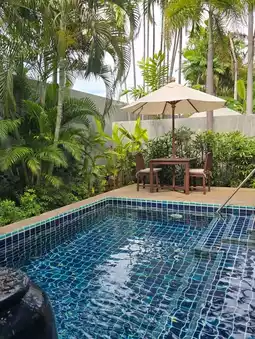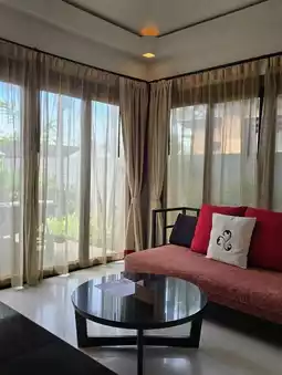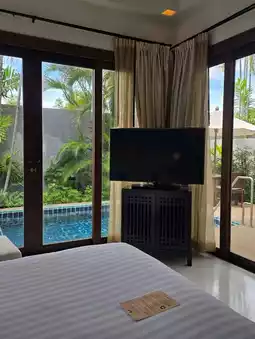 Mövenpick Asara Hua Hin Hotel offers a pool villa with a not-too-small pool. The room is divided into one bedroom and one living room, with both rooms equipped with a TV. The room is nice and quiet, with a comfortable bed. The bathroom is very large, allowing you to walk around to the bathroom from the pool, preventing water from soaking the bedroom floor. The water flows strongly, and in just a few minutes, you'll have a full tub of warm water ready for soaking.