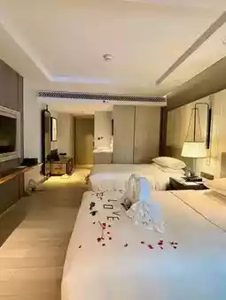 First of all, this hotel is very peaceful and located right by Hua Hin beach. The swimming pool is large and has multiple zones, making it perfect for kids. As for the bedroom, the bed is incredibly soft and comfortable, ensuring a good night's sleep. The room also smells amazing.