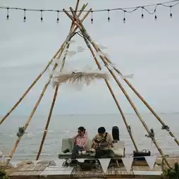 Today, we will take everyone to check in at 1d+ day artist at Khao Tao, Pranburi. If anyone is looking for a restaurant or cafe with a good atmosphere, we recommend this place because this place offers both food, drinks, cafe, and delicious cakes. Whether you bring friends to hang out, bring your lover on a date, or come to eat with your family and relax, it will feel great. This place has arranged a great photo corner. If anyone comes by this area, don't forget to check in here.