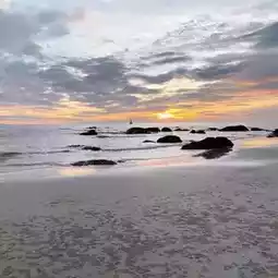 The view is pleasing to the eyes with a row of unique pine trees. You can take beautiful pictures. Anyone who wants to play in the sea can relax because the sea water here is clear and clean. The beach is beautiful. It is suitable for relaxing, sitting and lying down. It is also another place where you can bring your children to play in the sea.