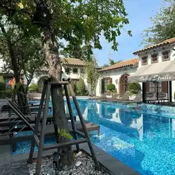 #Review of beautiful accommodation Villa Sevilly Huahin We went on a weekday. It was almost a private pool villa because there were only 2 people staying. Free mini bar, large bathtub, relaxing in warm water. The accommodation is very beautiful and exactly as advertised. I was impressed by the warm welcome from the staff. The accommodation has free food in the room, such as porridge, instant noodles, orange juice, and various snacks. There are so many. I haven't stayed anywhere like this. I was very impressed. The swimming pool is open for swimming 24 hours. So cool.