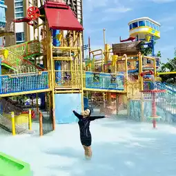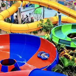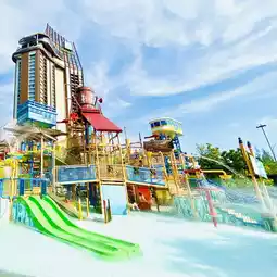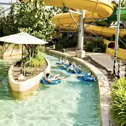 Water Jungle has many fun zones to choose from, such as the Boommerrango, Inner Tube, Rattler Super Bowl, the giant wave zone, the medium-sized slide zone waiting to collide with a large water tank pouring on us, it's extremely fun, or you can enjoy yourself in a relaxing way, lying on a rubber ring, watching the birds and trees, this is also happy. If you want to feel the breeze and enjoy the cool atmosphere, there are Beach Huts or Cabanas for rent in the water park area.