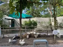 It is a garden-style cafe. Inside the shop, there are many breeds of ducks and chickens. The little ones are very cute. They also sell organic products and fresh duck and chicken eggs from the farm.