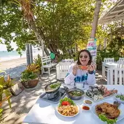Another restaurant that Moo and my family have been frequenting since childhood and is a #Hua Hin restaurant that has been around for over 30 years by the sea at Khao Takiab. There are a variety of menus, fresh ingredients, good taste. Anyone who comes to #Hua Hin and is looking for a delicious local restaurant, #Moo Burin Sai Daek recommends this restaurant. What Moo likes the most is the fried sea bass with fish sauce and the grilled seafood set, eaten with spicy seafood sauce, very delicious. In the evening, watching the sunset and eating with the family is very good. In addition, for those who want to drink crunchy drinks, they also have a cute bar.