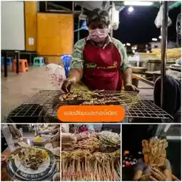 3. Jeab Beer's Papaya Skewer, dinner snack, skewer, squid, etc., grilled over the fire, eaten with papaya, so delicious you can't stop.