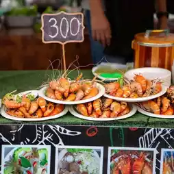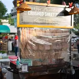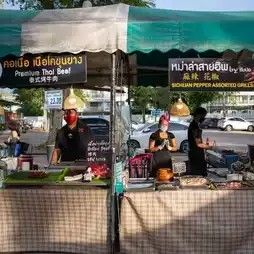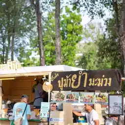 Tamarind Market is a place to eat and shop in an outdoor atmosphere. Sit back and relax, take a leisurely stroll, and choose your favorite food to sit at the communal table. There are many types of food to choose from. The shop is a booth with staff to clean the tables and collect the dishes all the time. It is open 4 days a week: Thursday, Friday, Saturday, and Sunday from 4:30 PM to 10:30 PM. There are preventive measures such as alcohol hand sanitizers and wearing a mask before entering the market every time for safety. Parking may be a bit hard to find if you come at night. Parking fee is 50 baht.