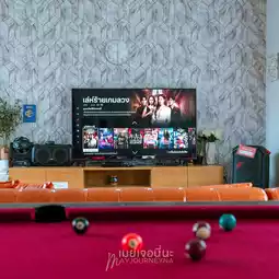 ➡️A large sofa, a large-screen Smart TV with full-range karaoke.