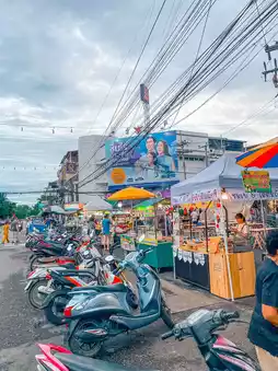The shops will start from 16:00 until 24:00 every day. Here, there are both food, Thai food, sweet and savory food, or souvenir shops.