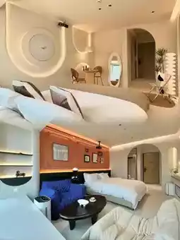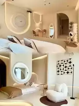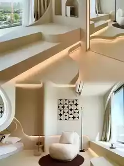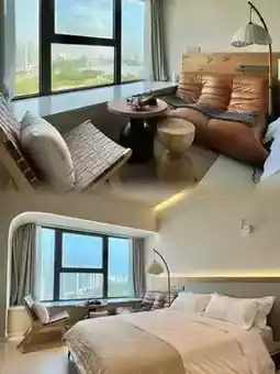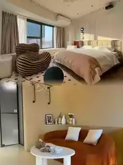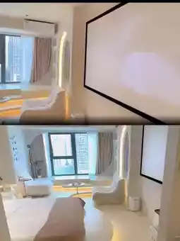 The cream color is so gentle! There is also a big bathtub! Sofa, projector!