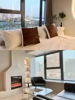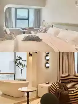 Open the curtains on the bay window and you can see Wanda opposite. Go downstairs and cross the road to the commercial center. It's very close to the business district. The hotel is in Building 1, Block B, Jindi Center. I really like the two bean bag chairs. I was too lazy to go out at night, so I ordered takeout. If I couldn't finish it, I could put it in the small fridge in the room. It was very comfortable to eat and lie down.