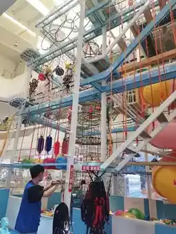 During my school break in China, I took my child on an indoor adventure activity. I highly recommend this place. I think it's clean. Usually, other cities tend to be a bit dirty, perhaps because of the crowds and the size of the city. The price is 90 yuan per visit, with unlimited play time for the whole day. You can go out for a meal and come back to play again. There are staff members who monitor every area for safety. I watched my child throughout the play, and I saw that he challenged his courage and solved some problems with how to climb up. Initially, I was afraid to go for a single round, but he didn't want to leave. He chose to rest and continue playing, and he loved it. He played for 4 hours, and his head was soaked. 😂 Don't worry about your child getting thirsty or not having enough water. The playground has water for sale at 2 yuan per bottle.