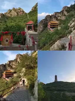 At the foot of the mountain, the path zigzags upwards. No matter how far you've walked, the Three-Story Four-Pillar Archway marks only the starting point. Numerous attractions await, including the Mountain God Temple, Empress Dowager Xiao Pavilion, Mingji (Crowing Rooster), Guanyin Temple, Longguyan (Dragon Bone Rock), Yongning Temple, Wuzhifeng (Five Finger Peak), Luotuoyan (Camel Rock), Shouguifeng (Tortoise Peak), Zhushadong (Cinnabar Cave), Suolumeng (Locked Road Gate), Bifengqiao (Windbreak Bridge), Nantianmen (Southern Heavenly Gate), Yuhuangge (Jade Emperor Pavilion), Bixia Yuanjun Temple on the West Peak, and the Sunrise Viewing Platform on the East Peak.