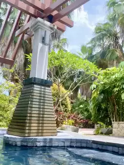 The resort's hot spring area is charmingly inviting, featuring Japanese and Balinese-style pools and a multi-functional spa. Immersed in the mist and surrounded by lush greenery, all fatigue will melt away.