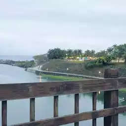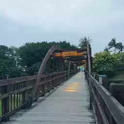 A bridge located in Hualien City that connects Beibin Park and Peace Square. It spans the outlet of Meilun River [Shuguang Bridge]. The wooden bridge can overlook the entire seascape of the Pacific Ocean and is also suitable for watching the sunrise. It is a staggered three-and-a-half-arch bridge. The wooden pillars with warm lights are also very atmospheric, because the bridge connecting the park and the bicycle path is a place that locals love to visit, and it is also a very representative bridge in Hualien City.