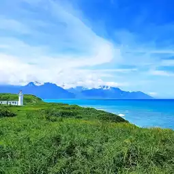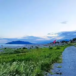 The Pacific Ocean is cool in September, and it is a beautiful day in the town.