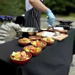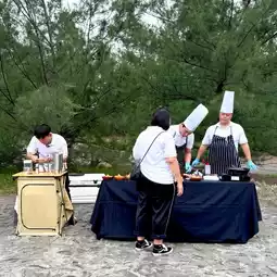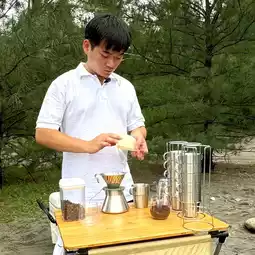 The hard-working food team cooked delicious food for us outdoors that day. In addition to the food, we also had hand-brewed coffee, which was a great treat.
