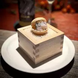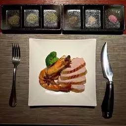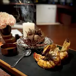 The pork meat is cooked to a super pink and tender texture, with a crispy outer layer and a soft, juicy and rich meat flavor on the inside. It can be paired with six colors of sea salt to bring out the multiple flavors. The chewy prawns with a strong charcoal aroma perfectly showcase the charm of the main dish.