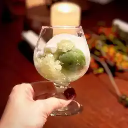 Finally, our dessert consisted of home-grown mint leaves, cantaloupe, almonds, and lychees. The youthful tones brought out a full fruit aroma, and paired with my favorite refreshing mint leaves, it awakened the taste buds.