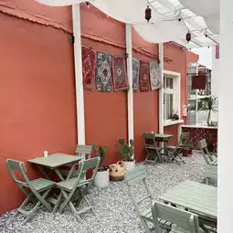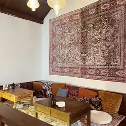 A very exotic building. The large floor-to-ceiling windows of the main door are matched with iron window frames. The decoration of the indoor counter is very tasteful. If I hadn't told you, I would have thought it was an accommodation. In fact, it is a coffee shop that specializes in large wheel cakes. It's very special. The seating area is very amazing. Have I come to a foreign country? The couch area is beautifully decorated and photogenic. And the fake round fire is really full of atmosphere. But we come here for its most special wheel cakes. Because it's not cheap, so come and taste and enjoy it.