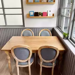 I stumbled upon this little shop by accident. I heard that the food here is delicious, which piqued my curiosity to give it a try. The shop's color scheme and decor have a very European feel, making it very relaxing. My favorite part is the second floor, which is as cute as a little study room. I ordered the shop's popular soufflé, and taking a bite was truly amazing. It was so fluffy that I couldn't stop eating. This is one of the best places I've eaten at so far, and I definitely want to come back again. I really love it.