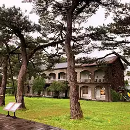 Pine Garden Villa is a major tourist attraction in the city. It was built in 1942. You can feel that there are many pine trees around it and the environment is quite quiet, so it is called Pine Garden Villa. You need to buy a ticket to enter, the full ticket is 60 yuan, and you can get 30 yuan off for consumption inside. At first I thought it might be a waste of money, but after going in I realized that it looks pretty good in photos. The building is distinctive, and the location is very good, with a wide view. You can take pictures of the Pacific Ocean and the red lighthouse from the outside 🚨. Since it can be used to offset consumption, I ordered a takeaway latte ☕ ($130), which tasted okay, a little small hahaha.
