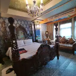 It is said that all the decorations from the lobby to the rooms are designed by the owner himself. All the furniture and furnishings are of great origin... they were brought back from all over the world by the owner. It feels like entering a museum.