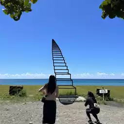 There is an art landscape on the coastal road in Hualien called Stairway to Heaven. It looks really visually impaired from a certain angle🥹. It attracts many people to take photos as a souvenir. It feels like you are really going to heaven. I think it is cool.