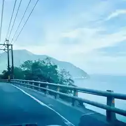 Driving north along the coastal line, the scenery of mountains and sea comes into view.