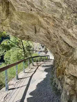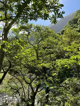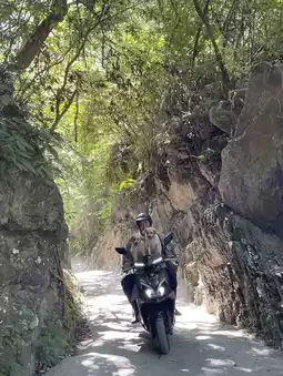 🔸The place we went to was a nature trail. It is a steep path along the dark blue river. The color of the rocks under the water reacted to make the water dark blue, green, and natural. Along the way, there are trees that grow naturally, both leaves and large trees, refreshing the whole way.