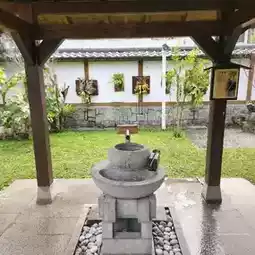 On the left hand side of the temple there will be the hand water house of a traditional Japanese temple