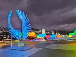 The festival is held at the East Gate Plaza and Pacific Park, combining Hualien's natural scenery with creative light displays to create a romantic and lively atmosphere. In addition to the iconic main lantern show, the area features various themed light installations, such as flower lights symbolizing the beauty of the four seasons, lanterns showcasing indigenous culture, and interactive light and shadow installations perfect for taking stunning photos.