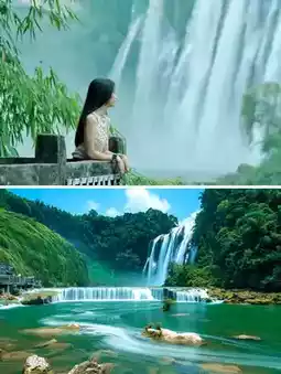 ▪️The waterfall is 101 meters wide, use panorama mode to capture the 'person in the painting' effect