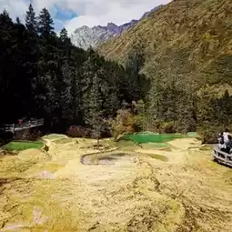 We visited the Huanglong Valley Scenic area during the Chinese National Holiday. That wasn't really a smart choice. There were a lot (really a lot) of people there.