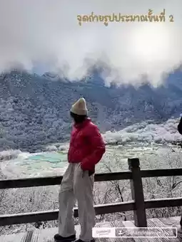 Day 2 Huanglong - At 6 am, wake up and have breakfast at Jisheng Hotel before heading to Huanglong Park. - At 6:30 am, leave the hotel. On the way, the car stopped due to heavy snow. We were stuck for about 15 minutes. While driving, we came across a viewpoint which is very beautiful. We came very early in the morning so there were few people. - At 8:30 am, we arrived at Huanglong Park and queued up to get our passports scanned to enter. We bought a cable car for the way up + a round-trip golf cart from the Chengdu Thai Travel Page for 1,500 baht per person. After taking the cable car, we didn’t take long to reach the golf cart transfer point. We had to exchange our passports for a golf cart ticket at the entrance before getting on the car. We had to keep our cool and not lose it because we had to use it for the return trip. After exchanging, we took the ticket to queue up for the golf cart. It didn’t take long to reach the entrance to see the view. The view was very beautiful. I felt that coming here was really worth it. - At around 10 am, we went out to take the cable car back. We had to buy a ticket for the way down ourselves. Or if anyone can walk, you can walk down 😅 It takes about 15 minutes to reach the exit - 10.20 Meet the driver and then we head to the ancient city of Songpan. This city is actually not in the plan, but the driver kindly stopped by for us since it is along the way. This city is a lovely city. If anyone has a chance to pass by, I recommend it. The beef burgers are very delicious, I highly recommend it. Walk a little from the entrance, it is on the right. The meat is on sticks, and they are sold at the market along the way. It's also delicious. - 15.00 We were sleeping on the way when the driver woke us up to take pictures with the yaks and the beautiful view along the way. The auntie taking care of the yaks was very cute. The photo fee is 10 yuan per person. Once we got some nice pictures, we crossed the street to use the restroom, which was shocking. 😅🤢 There is also a 1 yuan entrance fee. There are ruins of civilization in every room. We didn't know where to go. We continued our journey to Heshui - 17.00 The driver took us to have dinner at a restaurant near the hotel before checking into the hotel. Because this area is quite quiet at night, there were quite a few people at the restaurant we went to. I'm not sure if it's a famous restaurant. (But forgot to take a picture 😅) - 18.00 Arrive at Stay on the mountains hotel. We booked the Qie Suifeng Deluxe Two-bedroom Family suite. When booking this hotel, we took a chance because it had very few reviews and was a newly opened hotel. But when we opened the room, we were stunned. The room was very big and very good. The second thing was that the bathroom had a smart system like in Japan, which is very good. The shower and toilet are separated. There are 2 bedrooms, 2 bathrooms, very big and new. Worth it. There is no smell of cigarette smoke. There is breakfast for 4 people (but the breakfast is quite little. They will arrange a set like a local breakfast. No coffee as usual. It is recommended to make it and eat it in the room. There is coffee and tea in the room.) End of review. Day 2 is long again. #Chengdu travel #Chengdu #Chengdu accommodation #Huanglong #Huanglong Geopark