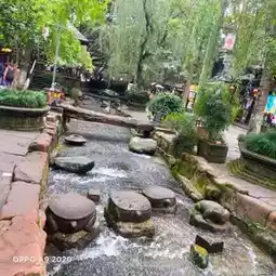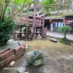 #100waysoftravel.Huanglongsi is well known for its hugely- retained ancient houses, century old trees, temples,magistrate court, and aura of old ancient town . Best so far that I have seen .A brook runs along the town area , almost 25 minutes walk long. Both sides of the brook is flanked by old Qing houses , still rustic and standing . From the map, water is conduit into this across- town brook from the Big Huanglong River. This brook gave an idylic feel to the commercial area of flanking shops , so pretty , so nice . It even serves a mill or 2 along the stream . Another man created water systems ? For how many centuries has it been . I beam with respect once again to brains of an olden era .