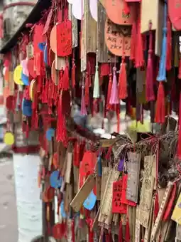 Standing among them, I felt that these plaques were not mere decorations, but rather a reflection of the human heart. Each plaque was a miniature universe, a wish suspended in the wind, passed on to time and nature. They shimmered in the sunlight and whispered in the night breeze, connecting invisible wishes into a vibrant forest of prayer.
