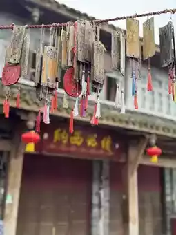 Walking into Huanglongxi Ancient Town, the breeze from the Nanxi River blew through tea smoke, and I was suddenly captivated by a vibrant display of color. A dazzling array of wooden prayer plaques hung in the corners of the ancient streets, like a silent prayer.
