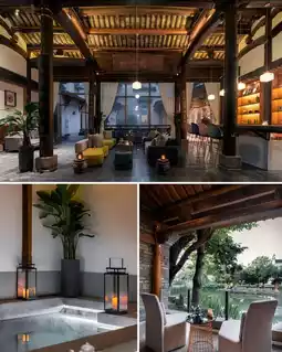The Weiyan Mansion was rebuilt on the Xinan Academy, and 12 ancient buildings from the Ming and Qing dynasties were rebuilt on the original site. It is said to be the childhood residence of Zhu Zhishan, one of the four great talents in Jiangnan. These Huizhou-style buildings, which are scattered in an orderly manner, seem to tell the story of the prosperity of ancient Huizhou. The hotel is fully equipped with indoor hot springs, outdoor swimming pools, coffee bars, restaurants, and other leisure spaces. Guests who like to take photos can wear Hanfu, take a small wooden boat, and gently paddle, as if they are in a poem and painting. After visiting the hotel, you may wish to take a walk in Xixinan Village, feel the shade of ancient trees, the coolness of the shade, the gurgling of the stream... The villagers are chatting leisurely, going for a walk in spring, enjoying the lotus in summer, walking in the maple forest in autumn, and watching the snow by the window in winter.