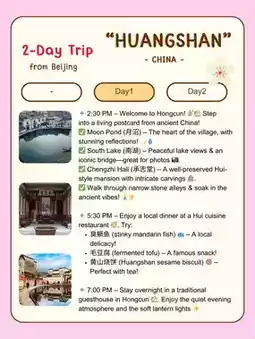 βWant to experience a fairytale village and breathtaking mountain views? πΏπ― Hongcun Ancient Village + Huangshan (Yellow Mountain) is the perfect 2-day escape from Beijing! Letβs go! πβ¨