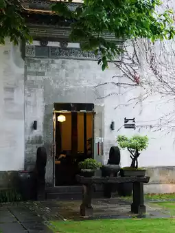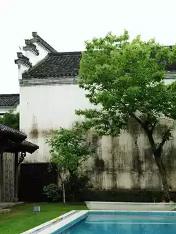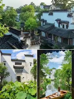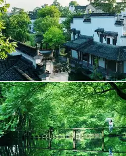 12 different Huizhou-style buildings, with deep courtyards, a different view at every step, pavilions and terraces scattered in an orderly manner, and white walls and gray tiles contrasting with green plants.