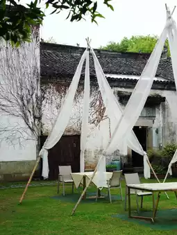 ·You can take atmospheric photos by the wooden lattice windows, next to the small boat, and on the paths in the hotel.