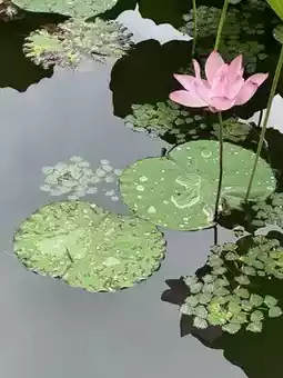 The pond ripples after a light rain, pink petals gently sway, like dancing a summer waltz 💃.