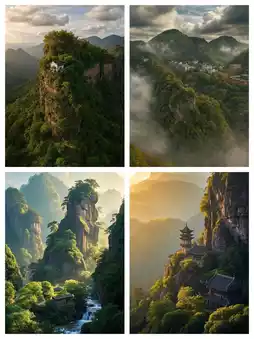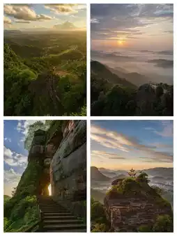 - Photography Routes: On the first day, visit Wangxian Tower, Mengzhen Bridge, Shouzi Rock, and Zhenxian Cave Residence to capture the sunset; on the second day, go to Yuxu Palace, Xiaohutian, and Fangla Village to photograph the sea of clouds, then experience bamboo rafting on the Hengjiang River.