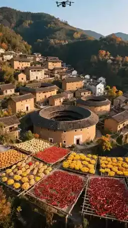 - Feature: 300 tulou buildings built on the hillside, spectacular autumn drying scenes