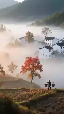 > Drive one day, see Hui-style architecture, millennia-old villages, forests dyed in autumn colors, and rivers like silk.