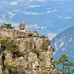 Mount Huangshan boasts 72 peaks, more than 1,000 meters above sea level, with three main peaks rising majestically. They are both fascinating and dangerously steep. Cliffs, stone forests, stone pillars, stone blocks and egg-shaped stones form the unique granite geomorphological scenery.The pines on the mountain are tall and have fascinating shapes. The famous Welcoming Guests (Yingke) Pine (1,500 years old) and See-Guest-Off Pine have become a symbol of being faithful, unyielding and hospitable.