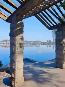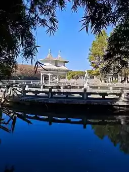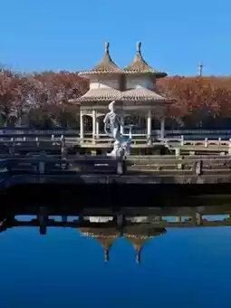 Chengyue Island is located in the southern half of the lake, facing Catfish Mound in the northern half of the lake across the bridge. Chengyue Island is a man-made island with clear lake and green trees. From a distance, you can see the clouds and mountains, and from a close distance, you can see the winding corridors. The lake and mountains complement each other, and the vast sea of smoke and waves are all on it. It is the visual focus of Huangshi.
